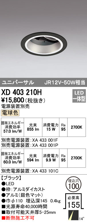 ODELIC ¥ª¡¼¥Ç¥ê¥Ã¥¯ ¥À¥¦¥ó¥é¥¤¥È XD403210H