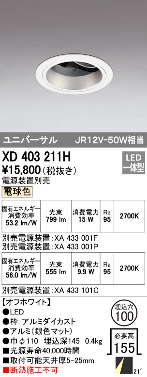 ODELIC ¥ª¡¼¥Ç¥ê¥Ã¥¯ ¥À¥¦¥ó¥é¥¤¥È XD403211H