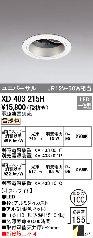 ODELIC ¥ª¡¼¥Ç¥ê¥Ã¥¯ ¥À¥¦¥ó¥é¥¤¥È XD403215H