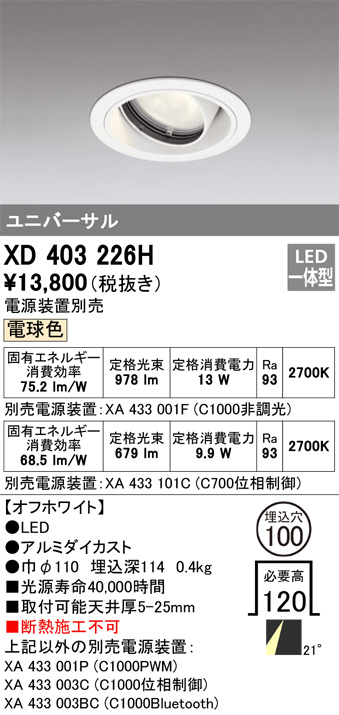 ODELIC ¥ª¡¼¥Ç¥ê¥Ã¥¯ ¥À¥¦¥ó¥é¥¤¥È XD403226H