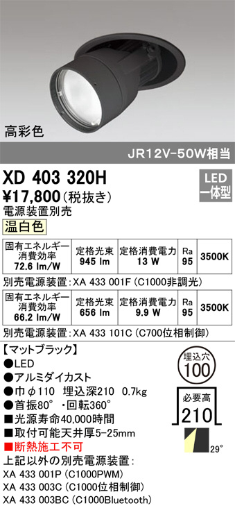 ODELIC ¥ª¡¼¥Ç¥ê¥Ã¥¯ ¥À¥¦¥ó¥é¥¤¥È XD403320H