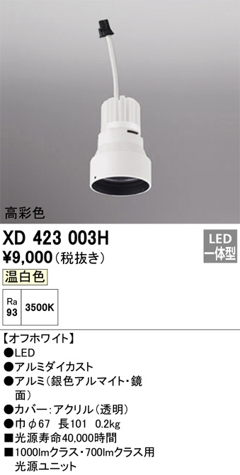ODELIC ¥ª¡¼¥Ç¥ê¥Ã¥¯ »Ü¹©ÉôÉÊ¡¦¼èÉեѡ¼¥Ä XD423003H