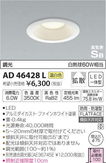 ¥³¥¤¥º¥ß¾ÈÌÀ KOIZUMI LED ¹âµ¤Ì©¥À¥¦¥ó¥é¥¤¥È AD46428L