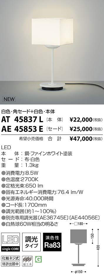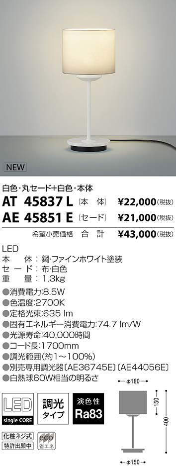 ¥³¥¤¥º¥ß¾ÈÌÀ KOIZUMI LED ¥¹¥¿¥ó¥É AT45837L