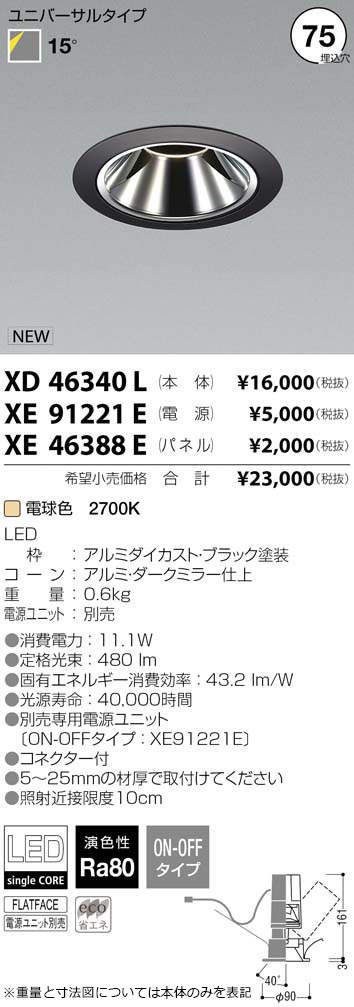 ¥³¥¤¥º¥ß¾ÈÌÀ KOIZUMI LED ¥À¥¦¥ó¥é¥¤¥È XD46340L
