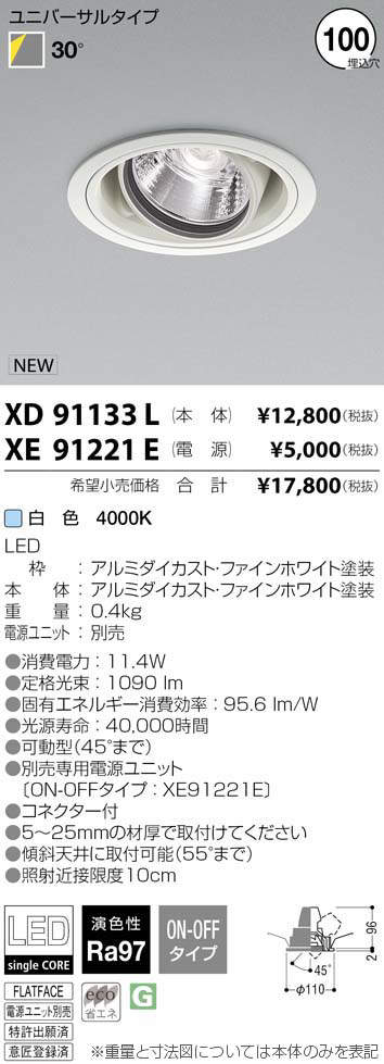 ¥³¥¤¥º¥ß¾ÈÌÀ KOIZUMI LED ¥À¥¦¥ó¥é¥¤¥È XD91133L
