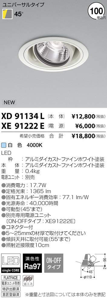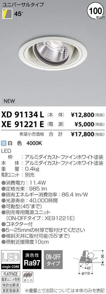 ¥³¥¤¥º¥ß¾ÈÌÀ KOIZUMI LED ¥À¥¦¥ó¥é¥¤¥È XD91134L