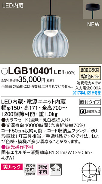 Panasonic LED ¥Ú¥ó¥À¥ó¥È¥é¥¤¥È LGB10401LE1