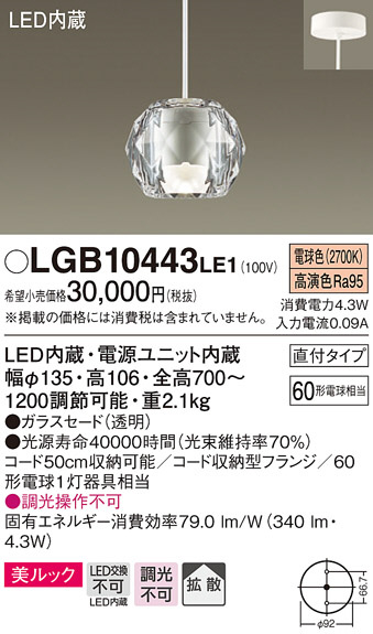 Panasonic ¥Ú¥ó¥À¥ó¥È¥é¥¤¥È LGB10443LE1