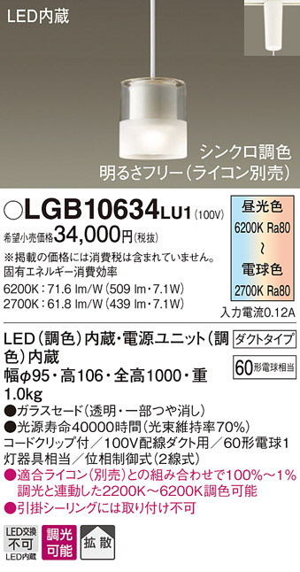 Panasonic ¥Ú¥ó¥À¥ó¥È¥é¥¤¥È LGB10634LU1