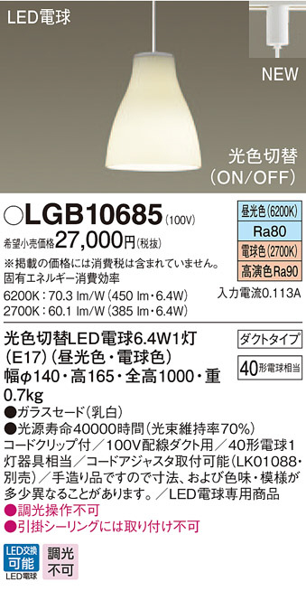 Panasonic ¥Ú¥ó¥À¥ó¥È¥é¥¤¥È LGB10685
