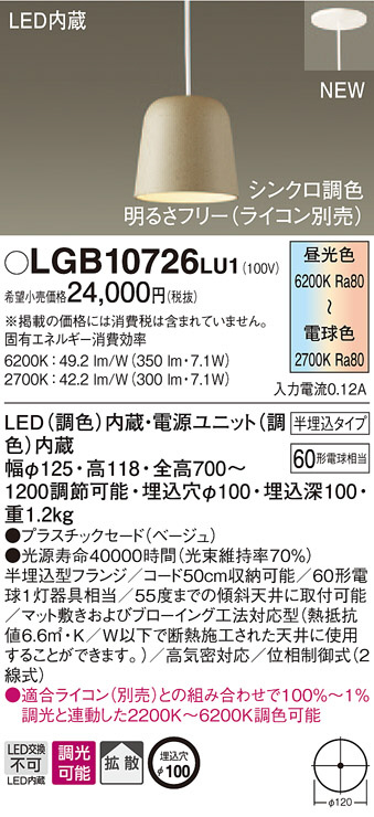 Panasonic ¥Ú¥ó¥À¥ó¥È¥é¥¤¥È LGB10726LU1