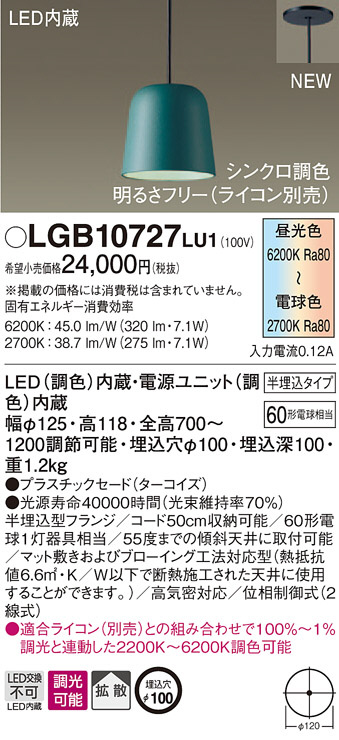 Panasonic ¥Ú¥ó¥À¥ó¥È¥é¥¤¥È LGB10727LU1