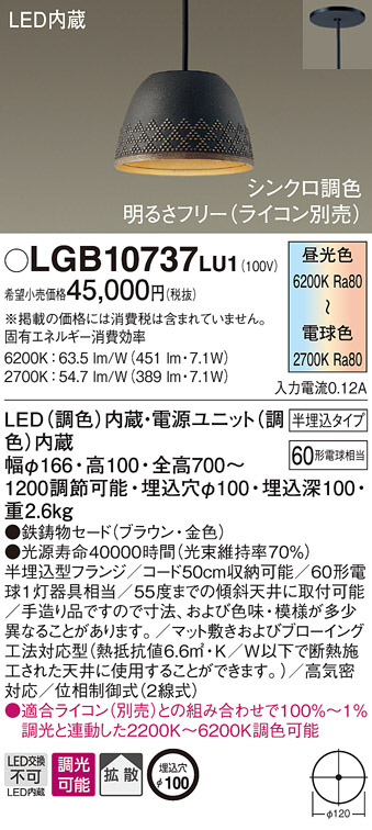 Panasonic ¥Ú¥ó¥À¥ó¥È¥é¥¤¥È LGB10737LU1