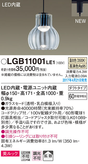 Panasonic LED ¥Ú¥ó¥À¥ó¥È¥é¥¤¥È LGB11001LE1