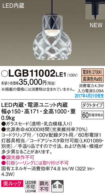 Panasonic LED ¥Ú¥ó¥À¥ó¥È¥é¥¤¥È LGB11002LE1