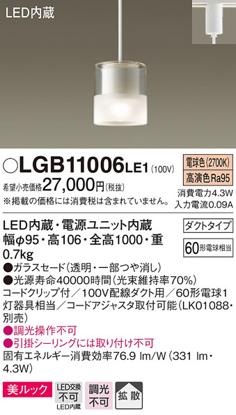 Panasonic ¥Ú¥ó¥À¥ó¥È¥é¥¤¥È LGB11006LE1