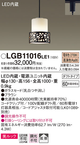 Panasonic ¥Ú¥ó¥À¥ó¥È¥é¥¤¥È LGB11016LE1