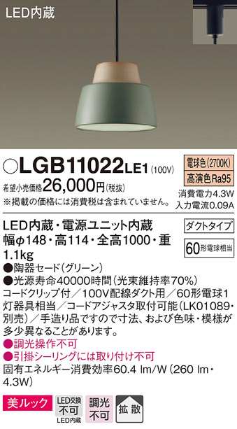 Panasonic ¥Ú¥ó¥À¥ó¥È¥é¥¤¥È LGB11022LE1