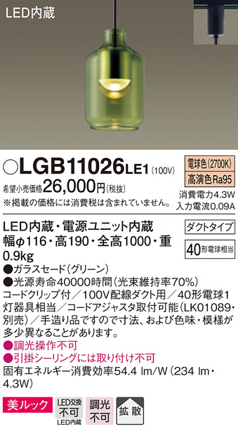 Panasonic ¥Ú¥ó¥À¥ó¥È¥é¥¤¥È LGB11026LE1