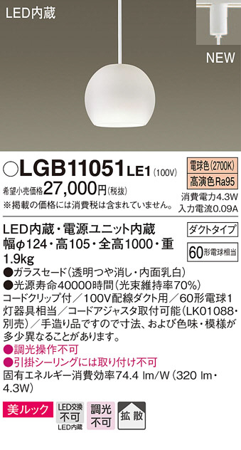Panasonic ¥Ú¥ó¥À¥ó¥È¥é¥¤¥È LGB11051LE1