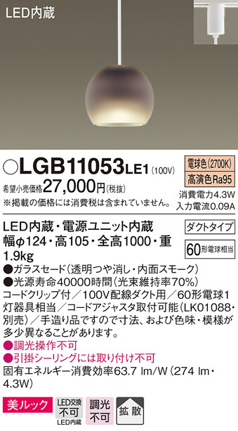 Panasonic ¥Ú¥ó¥À¥ó¥È¥é¥¤¥È LGB11053LE1