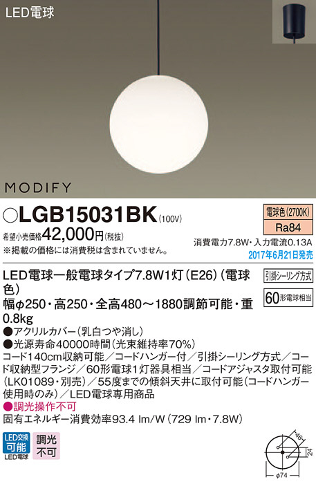 Panasonic LED ¥Ú¥ó¥À¥ó¥È¥é¥¤¥È LGB15031BK