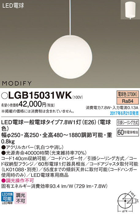 Panasonic LED ¥Ú¥ó¥À¥ó¥È¥é¥¤¥È LGB15031WK