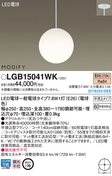 Panasonic LED ¥Ú¥ó¥À¥ó¥È¥é¥¤¥È LGB15041WK