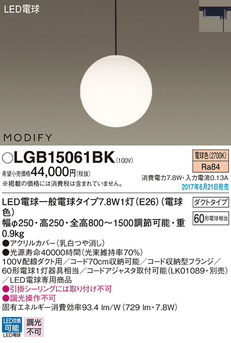 Panasonic LED ¥Ú¥ó¥À¥ó¥È¥é¥¤¥È LGB15061BK
