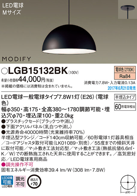 Panasonic LED ¥Ú¥ó¥À¥ó¥È¥é¥¤¥È LGB15132BK