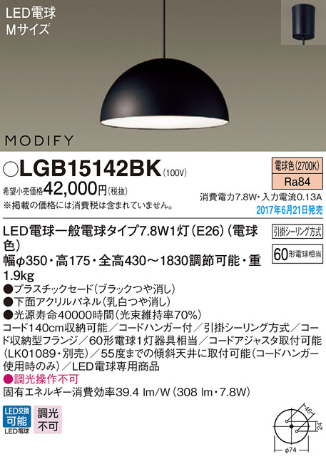 Panasonic LED ¥Ú¥ó¥À¥ó¥È¥é¥¤¥È LGB15142BK