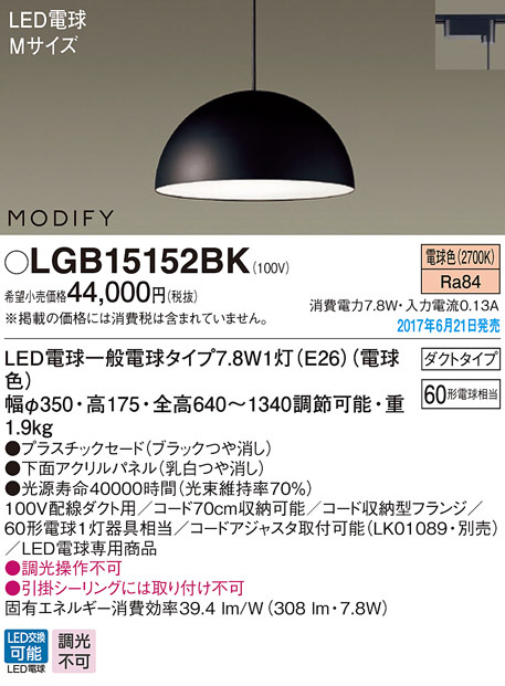 Panasonic LED ¥Ú¥ó¥À¥ó¥È¥é¥¤¥È LGB15152BK