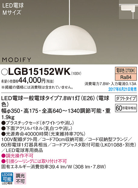 Panasonic LED ¥Ú¥ó¥À¥ó¥È¥é¥¤¥È LGB15152WK