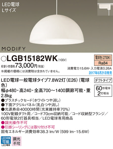 Panasonic LED ¥Ú¥ó¥À¥ó¥È¥é¥¤¥È LGB15182WK