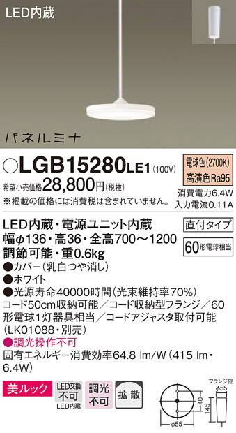 Panasonic ¥Ú¥ó¥À¥ó¥È¥é¥¤¥È LGB15280LE1
