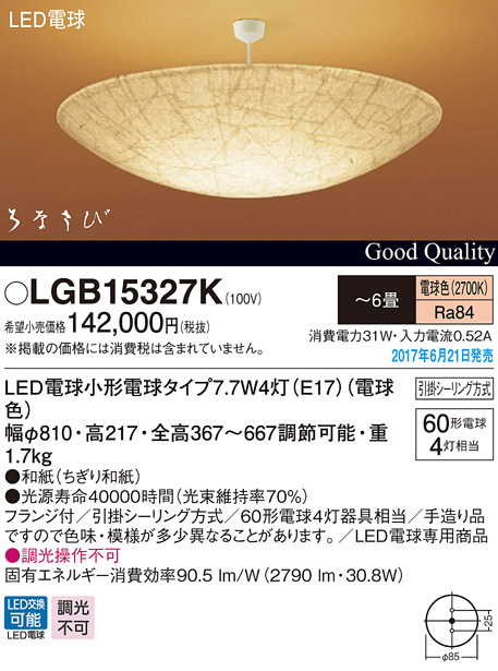 Panasonic LED ¥Ú¥ó¥À¥ó¥È¥é¥¤¥È LGB15327K