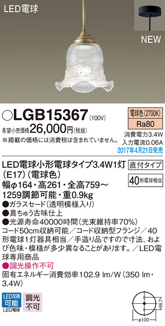 Panasonic LED ¥Ú¥ó¥À¥ó¥È¥é¥¤¥È LGB15367