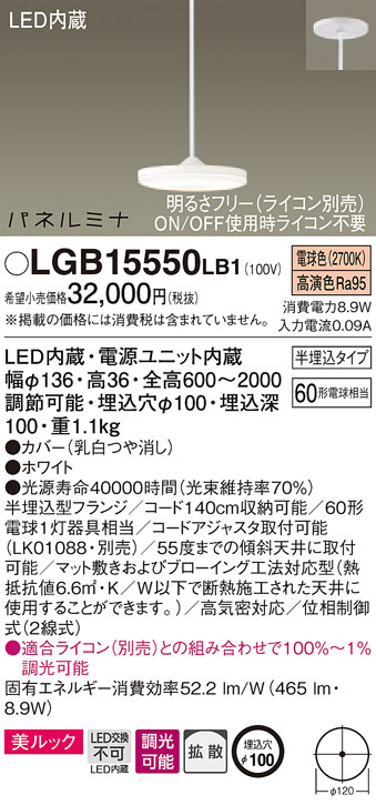 Panasonic ¥Ú¥ó¥À¥ó¥È¥é¥¤¥È LGB15550LB1