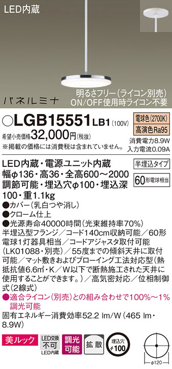 Panasonic ¥Ú¥ó¥À¥ó¥È LGB15551LB1