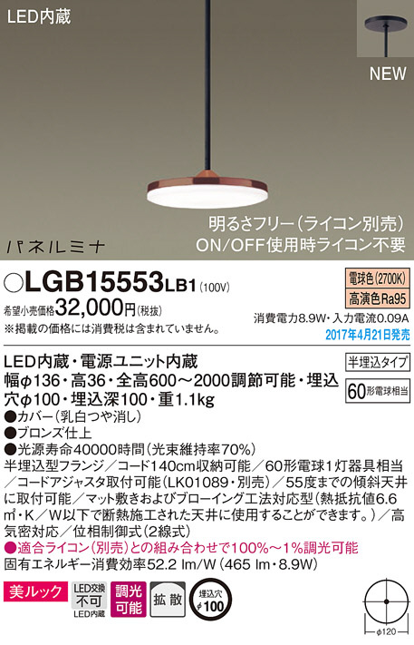 Panasonic LED ¥Ú¥ó¥À¥ó¥È¥é¥¤¥È LGB15553LB1