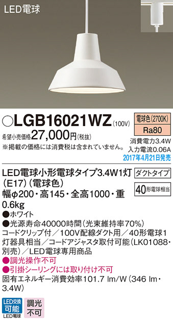 Panasonic LED ¥Ú¥ó¥À¥ó¥È¥é¥¤¥È LGB16021WZ