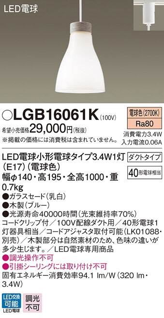 Panasonic LED ¥Ú¥ó¥À¥ó¥È¥é¥¤¥È LGB16061K