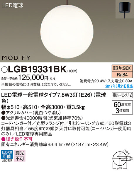 Panasonic LED ¥Ú¥ó¥À¥ó¥È¥é¥¤¥È LGB19331BK