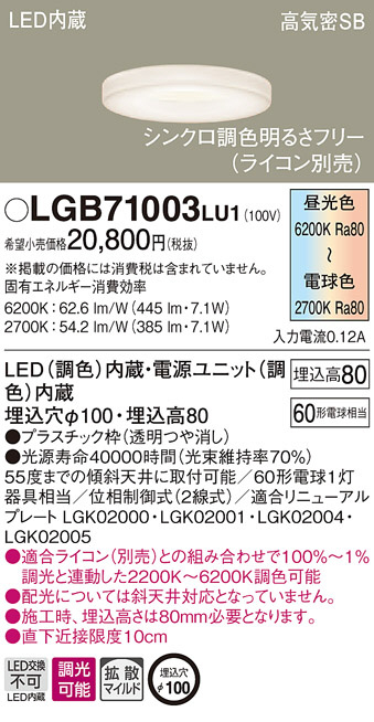 Panasonic ¥À¥¦¥ó¥é¥¤¥È LGB71003LU1