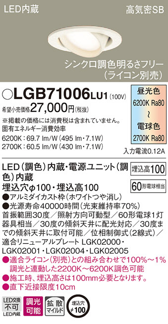 Panasonic ¥À¥¦¥ó¥é¥¤¥È LGB71006LU1