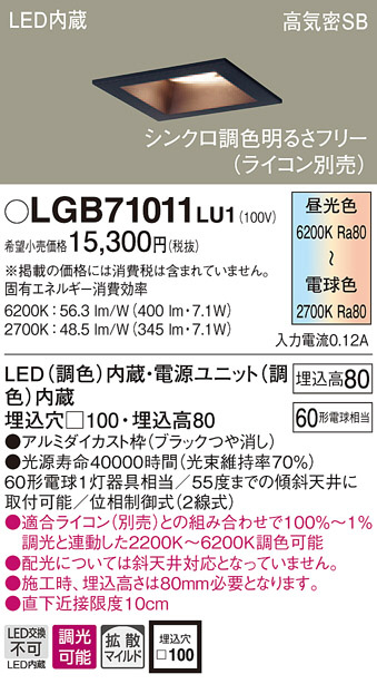 Panasonic ¥À¥¦¥ó¥é¥¤¥È LGB71011LU1