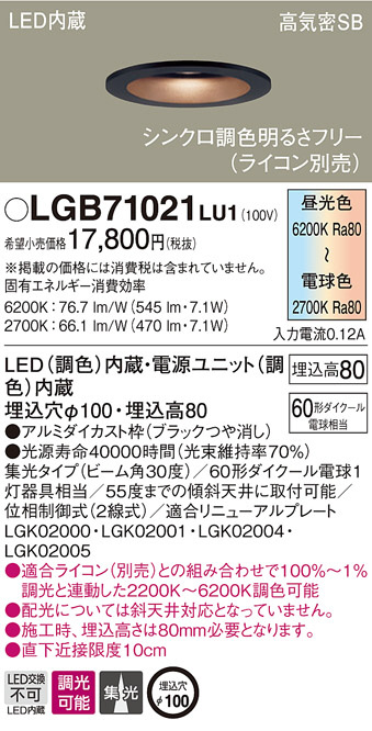 Panasonic ¥À¥¦¥ó¥é¥¤¥È LGB71021LU1