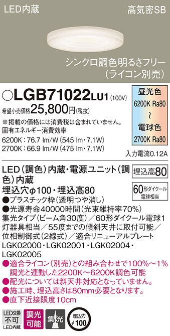 Panasonic ¥À¥¦¥ó¥é¥¤¥È LGB71022LU1