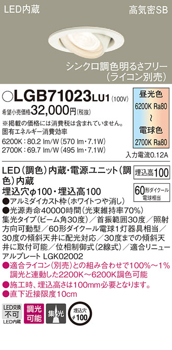 Panasonic ¥À¥¦¥ó¥é¥¤¥È LGB71023LU1